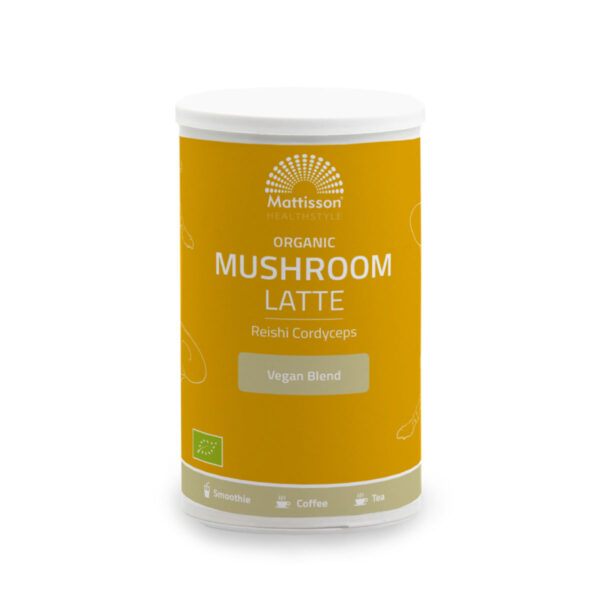 El Organic Mushroom Latte Reishi ofrece relajación, energía natural y apoyo para el sistema inmunológico. Fácil de preparar para una experiencia sabrosa y nutritiva.